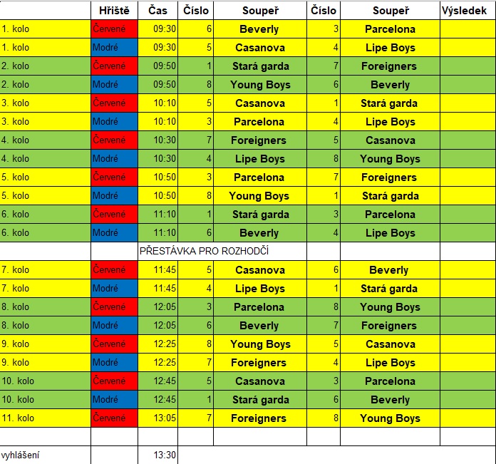 Znamená to, že první zápasy si zahrají odvěcí rivalové Beverly a Parcelona a na druhém hřišti Casanova a Lipe Boys.