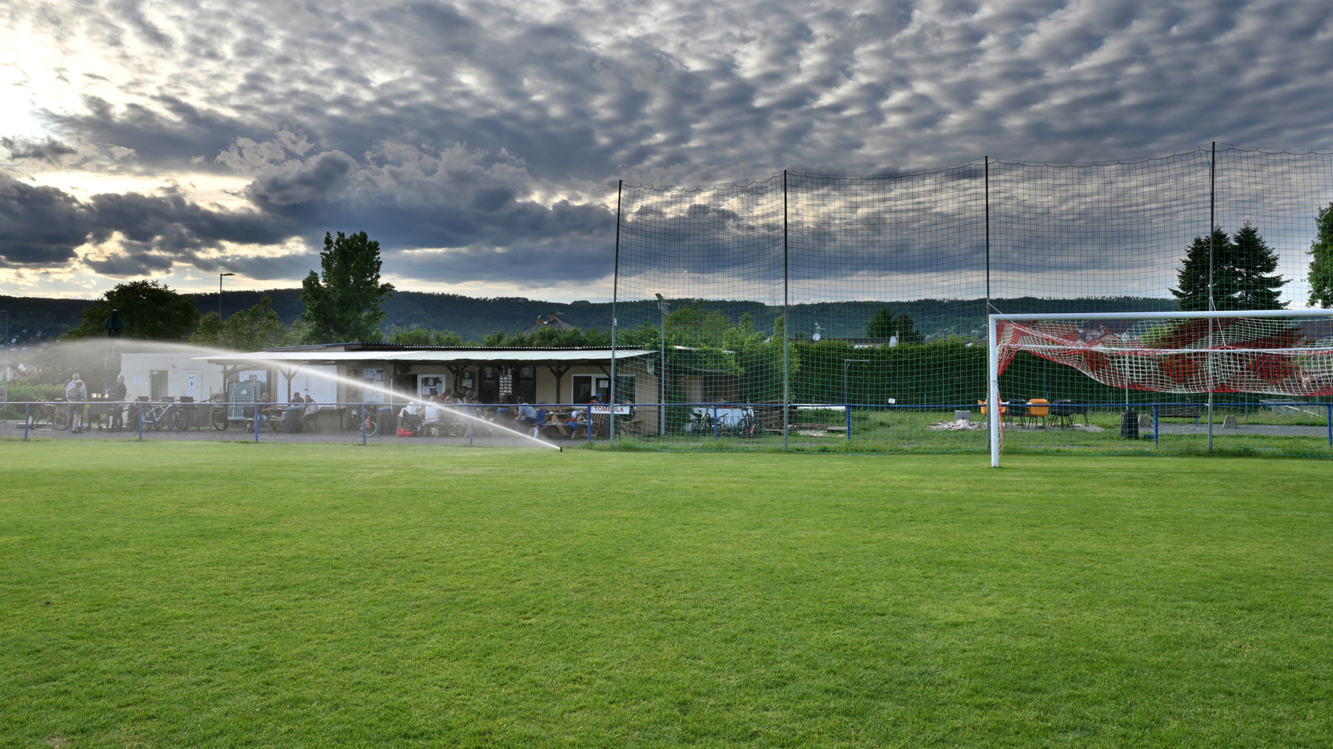 Hřiště s tartanem 18×36 metrů pro tenis, volejbal, nohejbal, basketbal a malou kopanou.